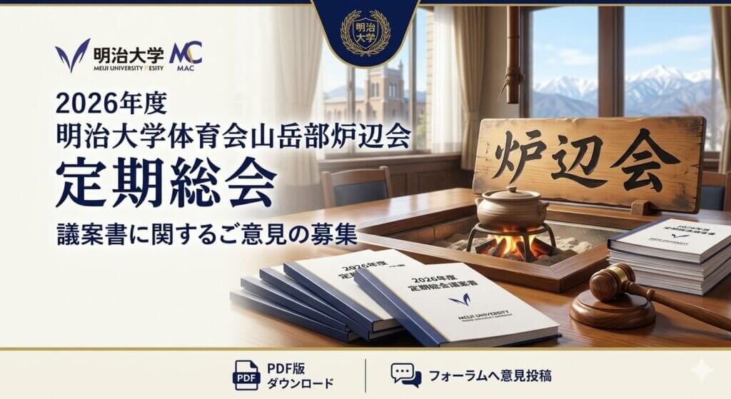 \ 学生が運営するサイトはこちら / 【公式】明治大学体育会山岳部Webサイト